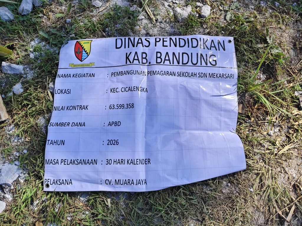 Wartadesatv, Bandung – Proyek pemagaran di Sekolah Dasar Negeri (SDN) Mekarsari Desa Cicalengka Wetan, Kabupaten Bandung kembali menjadi sorotan setelah ditemukan bahwa pekerjaan sudah berjalan 45% namun papan informasi proyek masih belum dipasang pada Senin (20/4/2026). Selain itu, muncul dugaan adanya mark up anggaran pada proyek yang dikerjakan oleh CV MUARA JAYA.