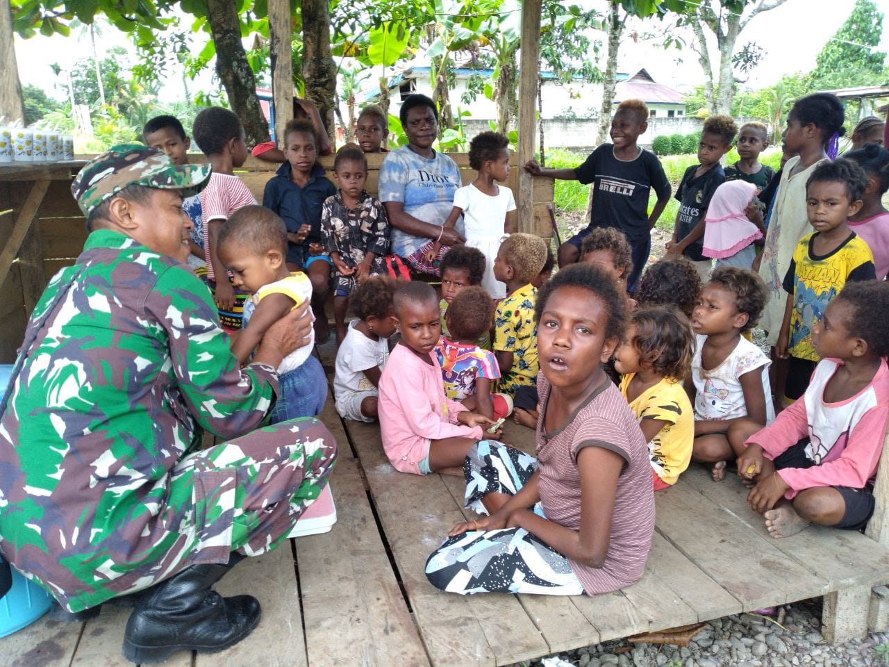 Wartadesatv, Timika – Sebagai upaya memberantas stunting di wilayah binaannya, Babinsa Koramil 1710-07/Mapurujaya dipimpin Serda Yohanes Lilik membagikan makanan tambahan untuk Balita, ...