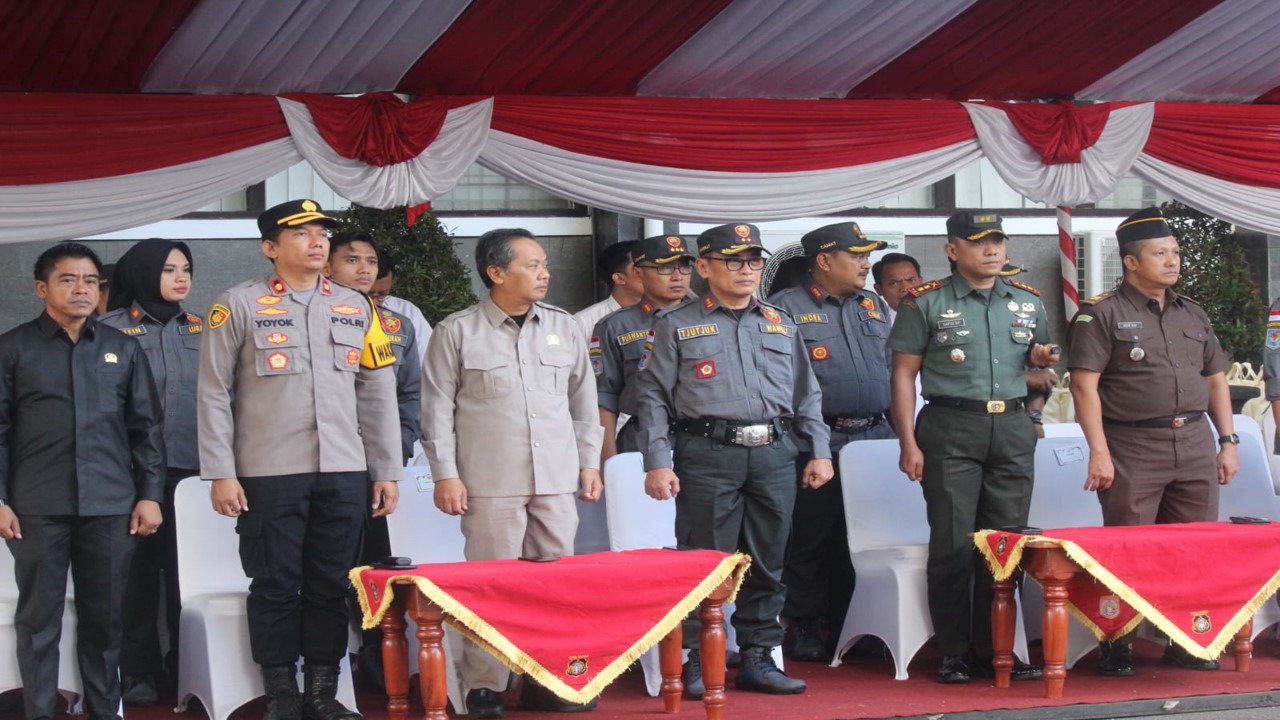 Wartadesatv, Blitar – Dandim 0808/Blitar Letkol Inf Sapto Dwi Priyono, S.E., bersama Forkopimda Kota Blitar, hadiri apel kesiapsiagaan dan pengukuhan Satuan Perlindungan Masyarakat (Satli...