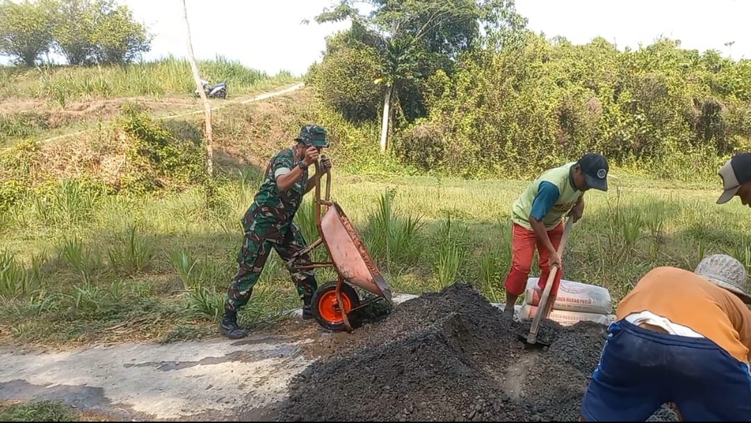 Wartadesatv, Blitar – Babinsa Koramil 0808/16 Talun Kodim 0808/Blitar Serda Edi Prasetiyo bersama warga masyarakat, melaksanakan kegiatan gotong royong bersama, untuk memperbaiki jalan me...